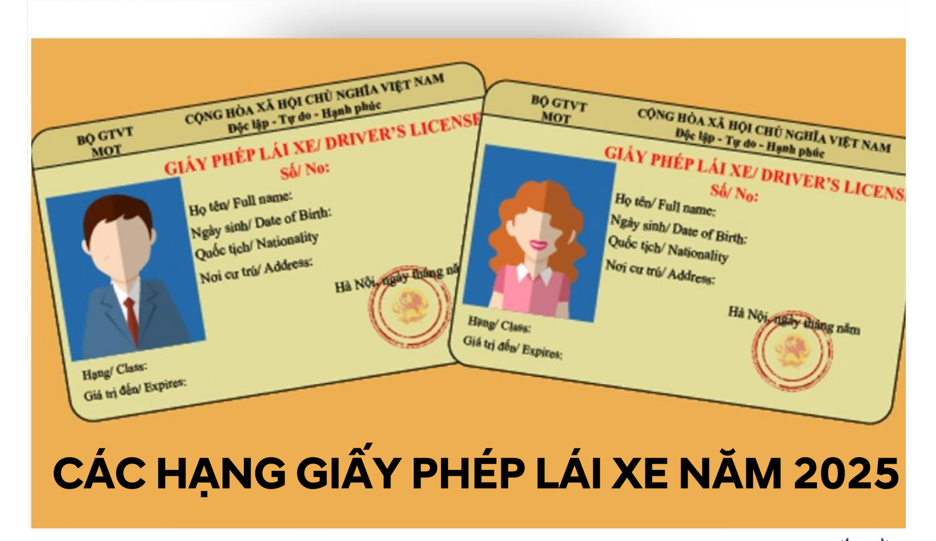 Trước đây có 13 hạng (A1, A2, A3, A4, B1, B2, C, D, E, FB2, FD, FE, FC), từ 1/1/2025, hệ thống GPLX mở rộng thành 15 hạng: A1, A, B1, B, C1, C, D1, D2, D, BE, C1E, CE, D1E, D2E, DE.