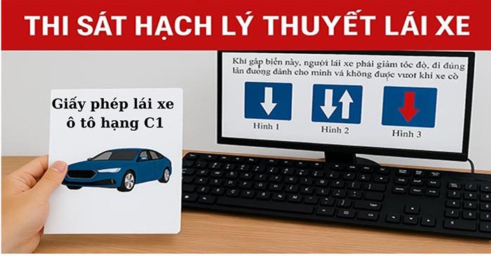 Bài thi trên máy tính bao gồm các câu hỏi về quy tắc giao thông, biển báo và sa hình. Đặc biệt chú ý đến các câu hỏi điểm liệt về đạo đức lái xe và các hành vi bị nghiêm cấm.